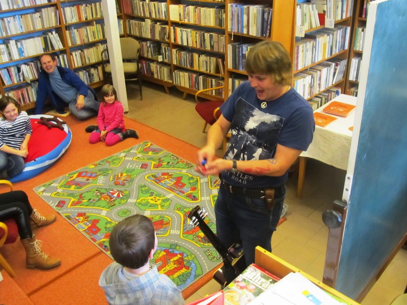 V knihovně a přísálí kulturního domu proběhlo v neděli již osmé zábavné odpoledne s dětskou knihou. Děti si mohly číst, hrát, vyrobit dárek, který tentokrát připravila paní Mgr. Martina Kryšková a Marie Pížová – moc děkujeme! Jako host přišel pan Marek Šolmes Srazil, který ze své knihy Pohádky do postýlky dětem přečítal, povídal si s nimi, zpíval a učil kreslit postavičky z pohádek.