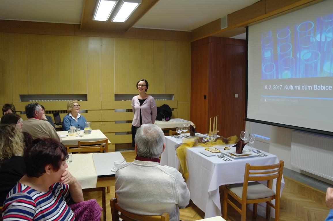 Do únorového klubu důchodců byla pozvána paní Bc. Marie Martinková ze SŠ průmyslové, hotelové a zdravotnické z Uherského Hradiště, aby jako vedoucí odborného výcviku povyprávěla o etiketě a stolování.