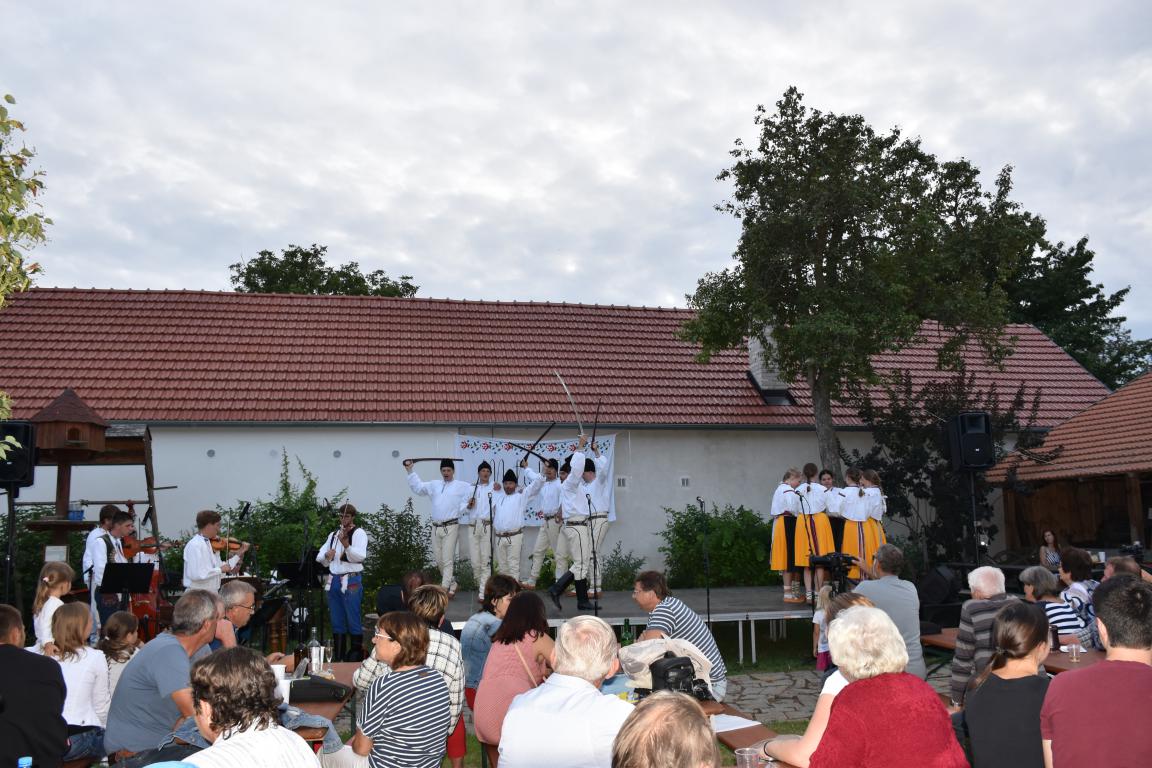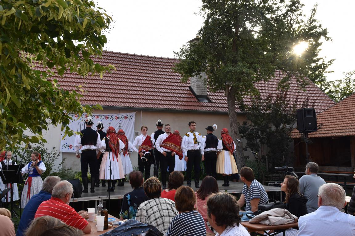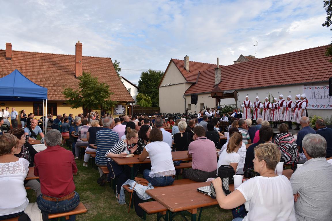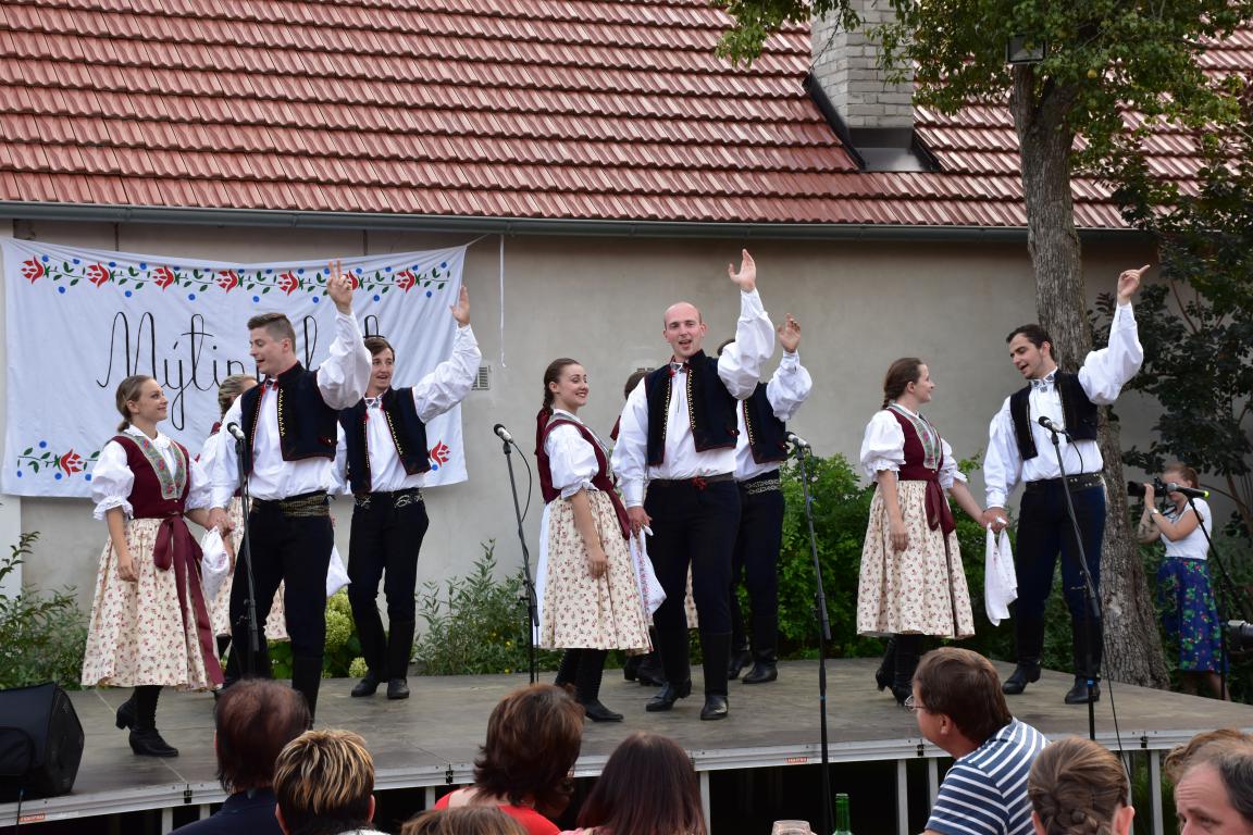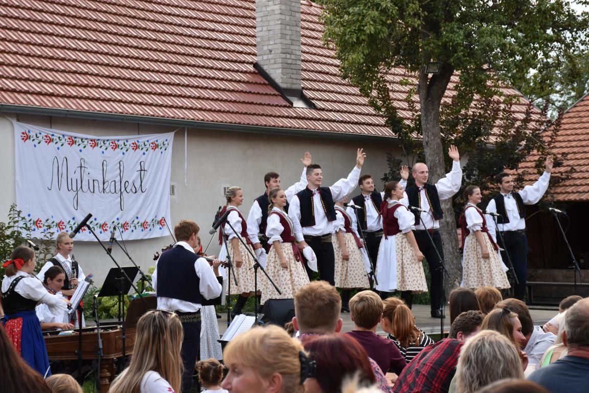 V sobotu navečer patřil areál Muzea Na Mýtince folklórnímu Mýtinkafestu. Pořádající FS Kalina vystoupil s již tradičním hudebním doprovodem CM Tramín z Buchlovic. Hosty letošního ročníku byli dívčí pěvecký sborek Kalinka a FS Lipovjan z horňáckého Lipova s doprovodem CM Marka Potěšila. Téměř dvouhodinový program jistě potěšil milovníky folklóru, kteří se po jeho skončení mohli ještě zúčastnit pokračování - besedy u cimbálu. Počasí bylo příznivé, nechybělo ani dobré jídlo a pití, i děti se mohly zabavit - buď u prolézaček nebo u voliér s různými opeřenci. I procházka sadem se starými odrůdami ovocných stromů byla v pozdním večeru příjemná.