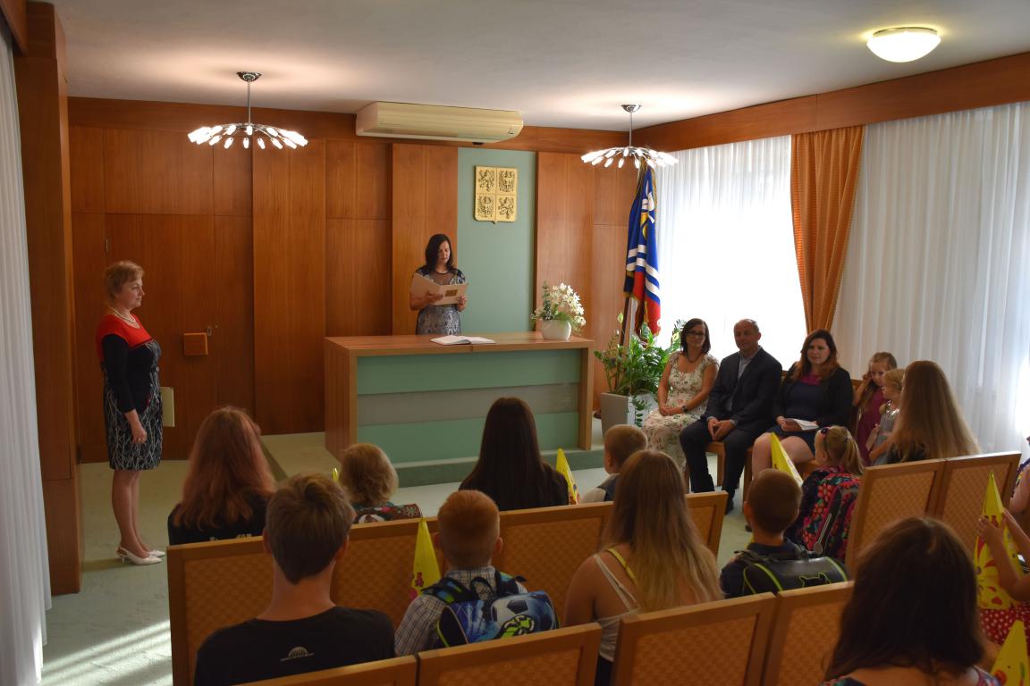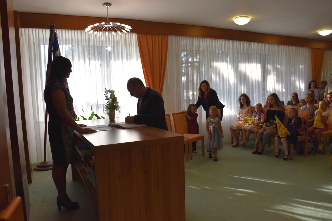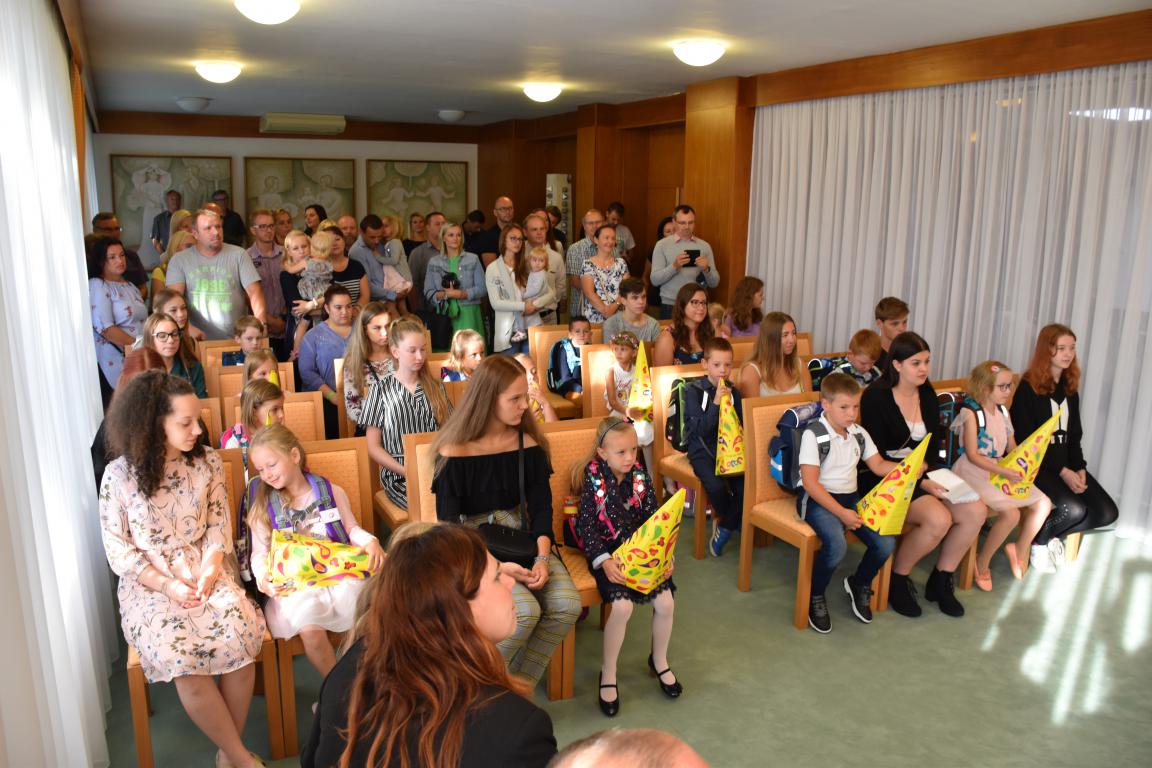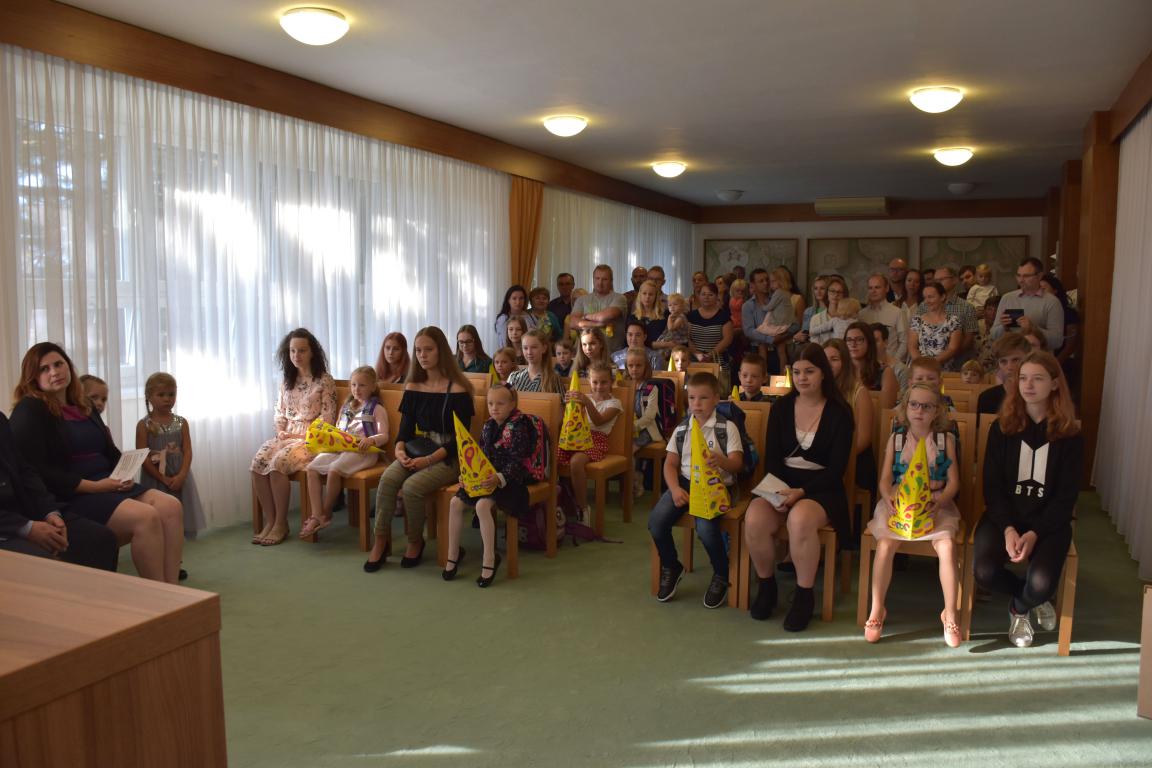 Prázdniny utekly jako voda a první den školy je tu. V obřadní síni obecního úřadu byli noví prvňáčci slavnostně přivítáni paní starostkou za účasti ředitele školy, ředitelky mateřské školy, jejich budoucí třídní učitelky a samozřejmě rodičů, sourozenců a prarodičů. Děti zde také čekal dárek od SRPŠ. Je hezkou tradicí, že při tomto důležitém životním kroku je přišli podpořit spolužáci z deváté třídy, kteří prvňáčky po krátkém programu odvedli do jejich třídy ve škole. Tam už je přivítala jejich třídní učitelka Mgr. Pavlína Drábková.