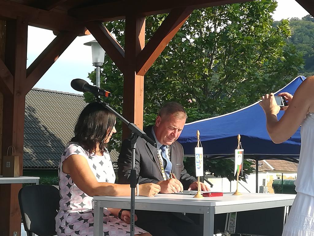 Zástupci naší obce v čele s paní starostkou zavítali v sobotu na Slovensko, aby se zúčastnili Dne obce Bzince pod Javorinou. Pozvání přijali od starosty Bzinců, Ing. Dušana Málika, který spolu s Mgr. Martinou Horňákovou při této příležitosti podepsal dohodu o vzájemné spolupráci mezi oběma obcemi. Součástí programu byla vystoupení folklorních skupin, takže si účastníci akce jistě odnesli zajímavý kulturní zážitek.