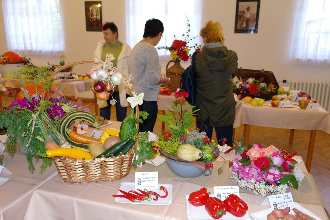 Letos se na své tradiční podzimní výstavě zahrádkáři kromě ukázky vypěstovaného ovoce a zeleniny a krásných podzimních aranžmá zaměřili také na to, co všechno se dá vyrobit z jablek - k ochutnání byly mošty a různé buchty a koláče s jablky. Jako tradičně přispěly svými dobrotami nejen zahrádkářky, ale i členky Klubu důchodců. Ani děti ze ZŠ a MŠ nezůstaly pozadu a opět přispěly k výstavě svými výtvarnými díly s podzimními motivy nebo přímo z podzimních přírodnin.