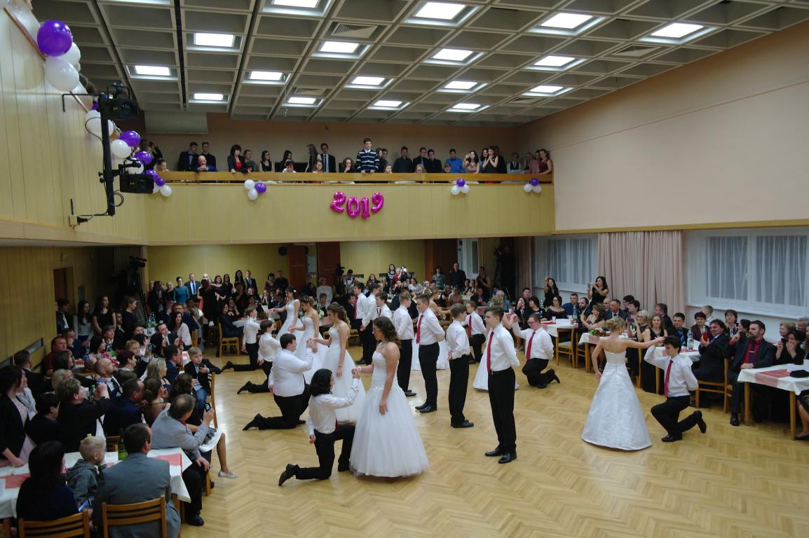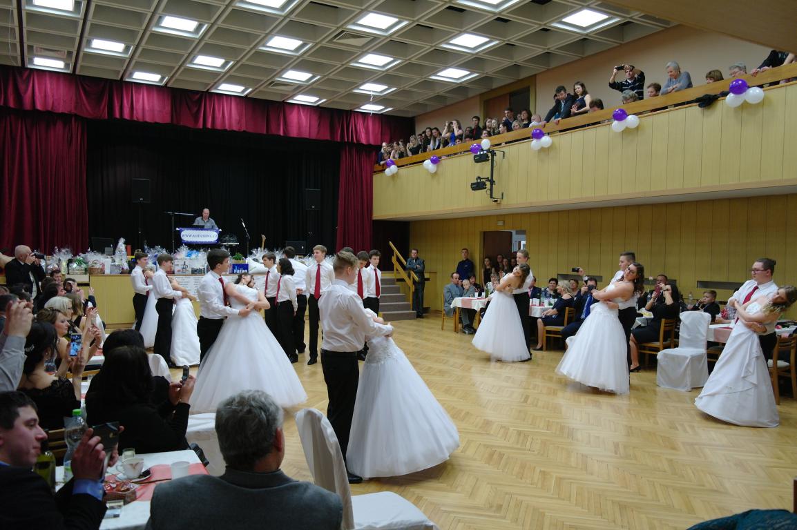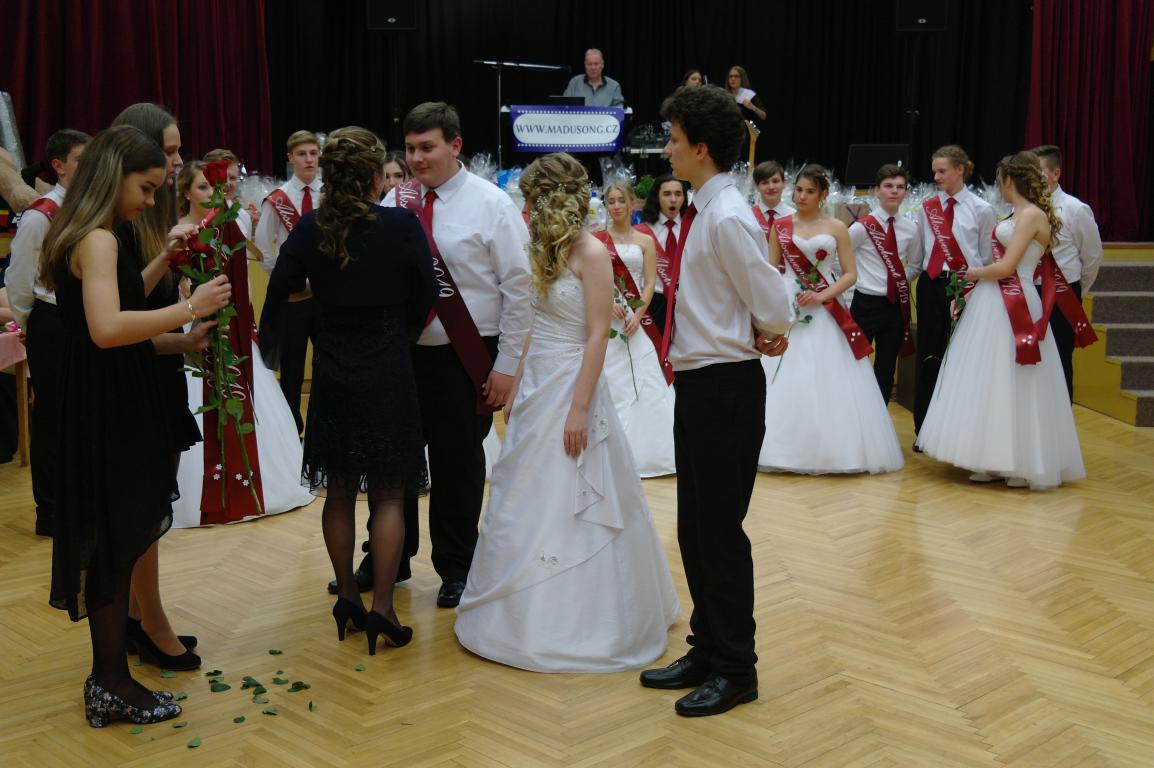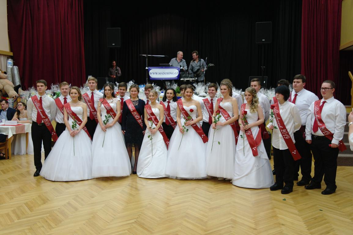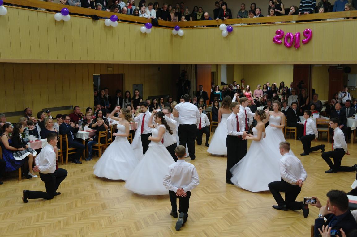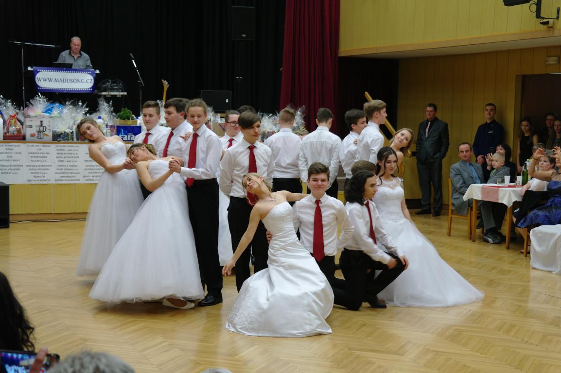 Tradiční únorový ples SRPŠ zahájili opět žáci 9. třídy polonézou. Potom vyzvali žáci k tanci své rodiče a po svém druhém vystoupení pak obdrželi šerpy absolventů 2019 od své třídní učitelky Mgr. Pavlicové. Program zpestřilo vystoupení školy aerobiku z Otrokovic, lákadlem byla také letos bohatá tombola.