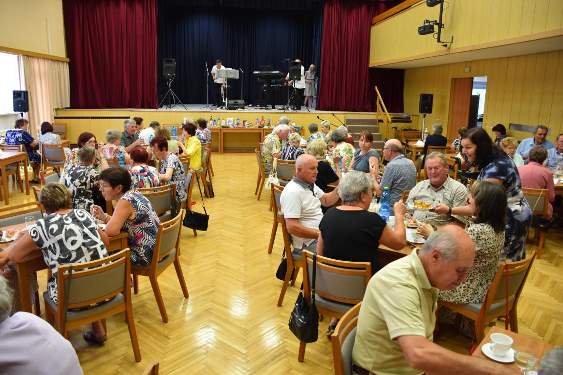 Program byl bohatý - po přivítání paní starostkou se na pódiu vystřídaly se svým programem DFS Kalinka, PS KAlinka a FS Kalina, všichni za doprovodu CM Tramín. Po přestávce na občerstvení začala hrát malá Topolanka, v jejímž repertoáru se střídaly jak lidovky, tak i popové písně, které seniory roztančily. V průběhu odpoledne paní starostka losovala tombolu.