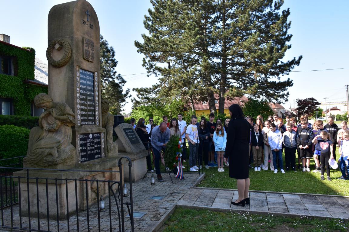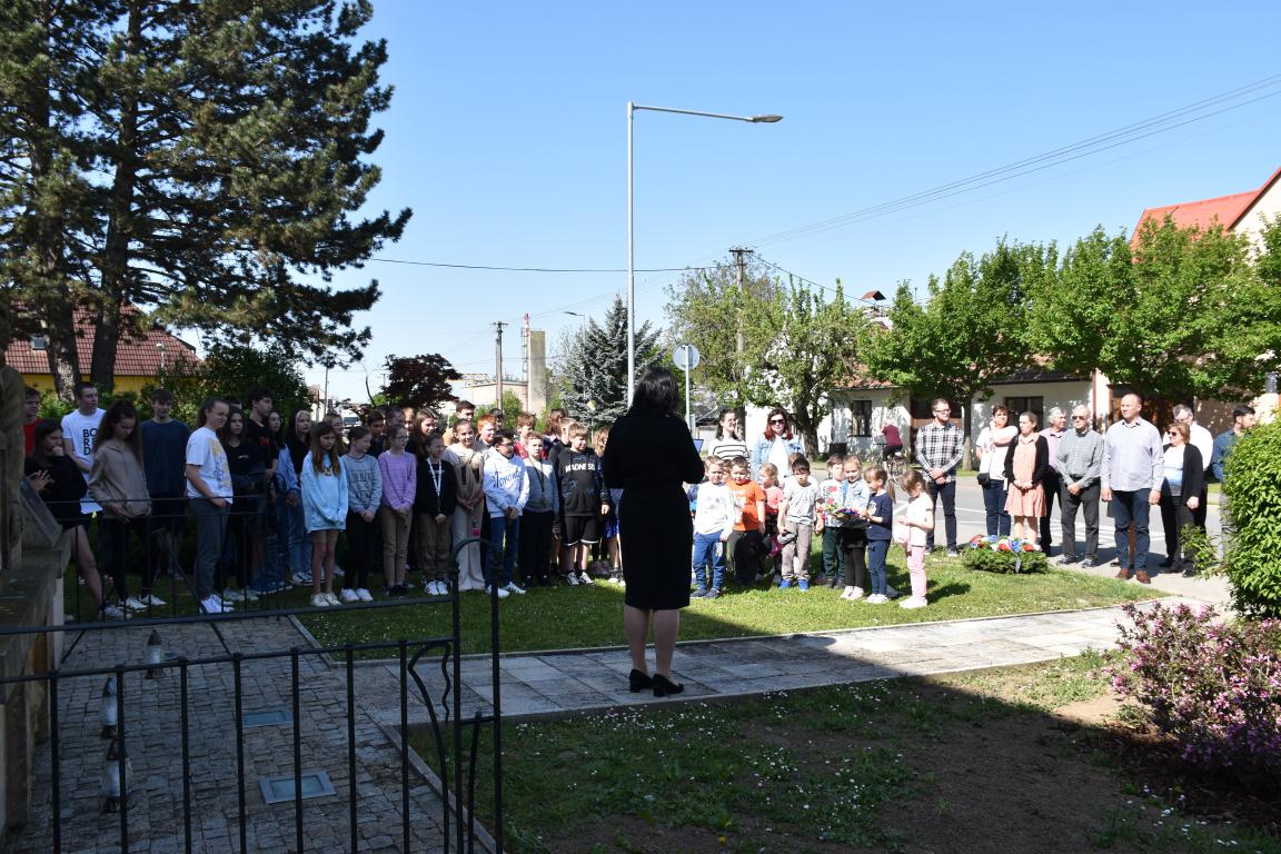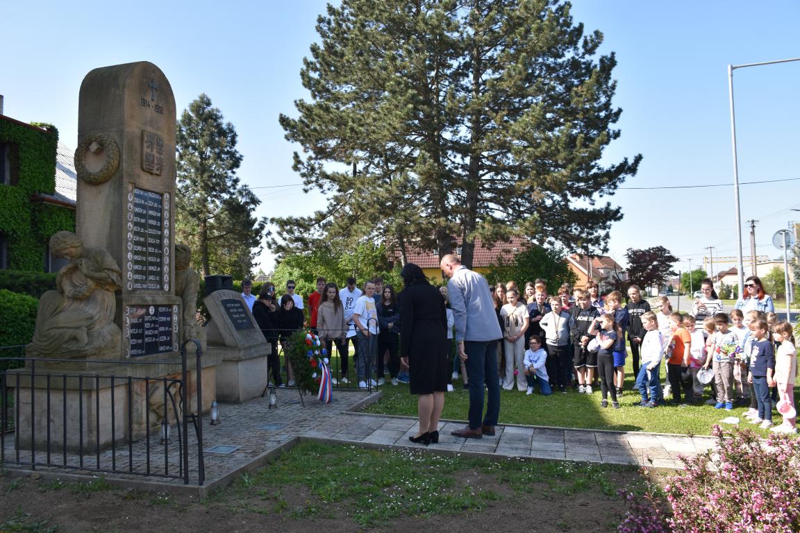 Zastupitelé, občané a děti z MŠ a ZŠ se sešli u pomníku padlým, aby si pietním aktem připomenuli 79. výročí osvobození naší obce.