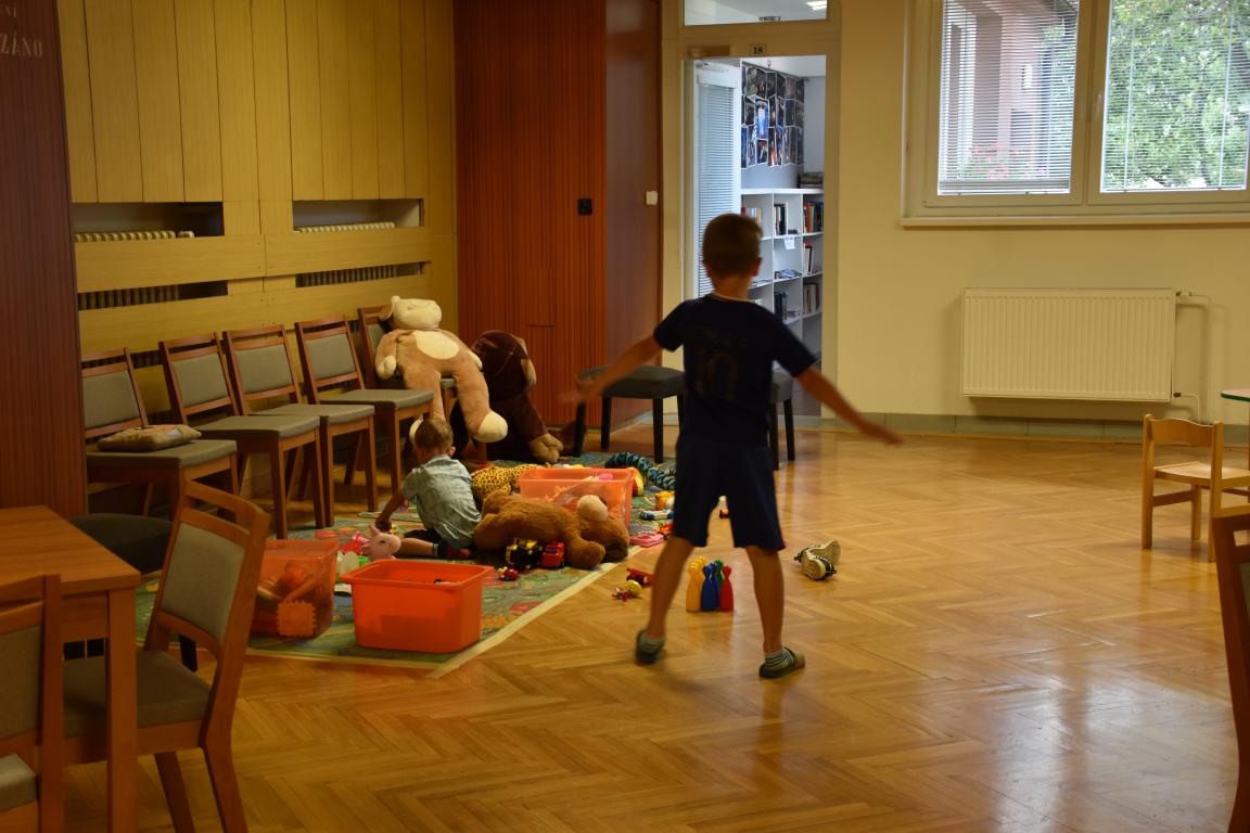Tentokrát byla doprovodným programem canisterapie, která se moc líbila nejen dětem, ale i dospělým. Vestibul kulturního domu přeměnila svými dekoracemi na útulnou kavárnu Gabuš Machučová, výborné zákusky připravily šikovné maminky Magda a Žaneta z klubu. V nabídce byla i letní ovocná limonáda a zmrzlina, kterou si překvapivě dopřávaly nejen děti.