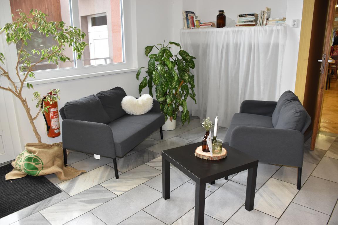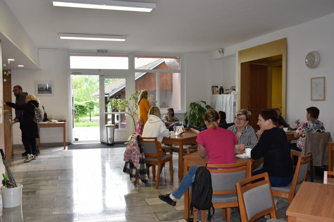 V neděli odpoledne se vestibul kulturního domu proměnil v kavárnu, kterou "provozoval" klub maminek ve spolupráci s knihovnou.