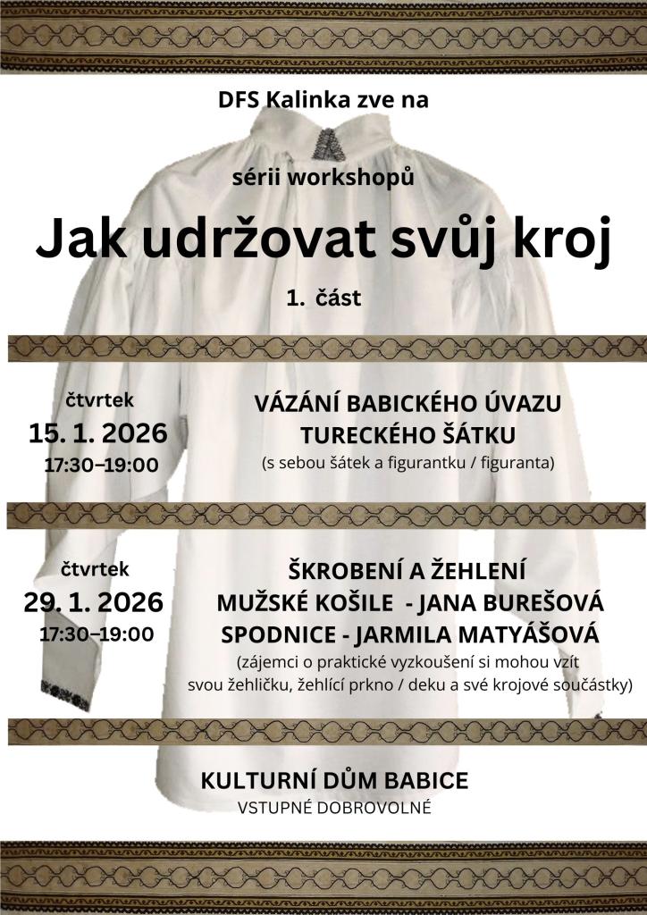 DFS Kalinka zve na další část workshopu o udržování kroje do Kulturního domu Babice.