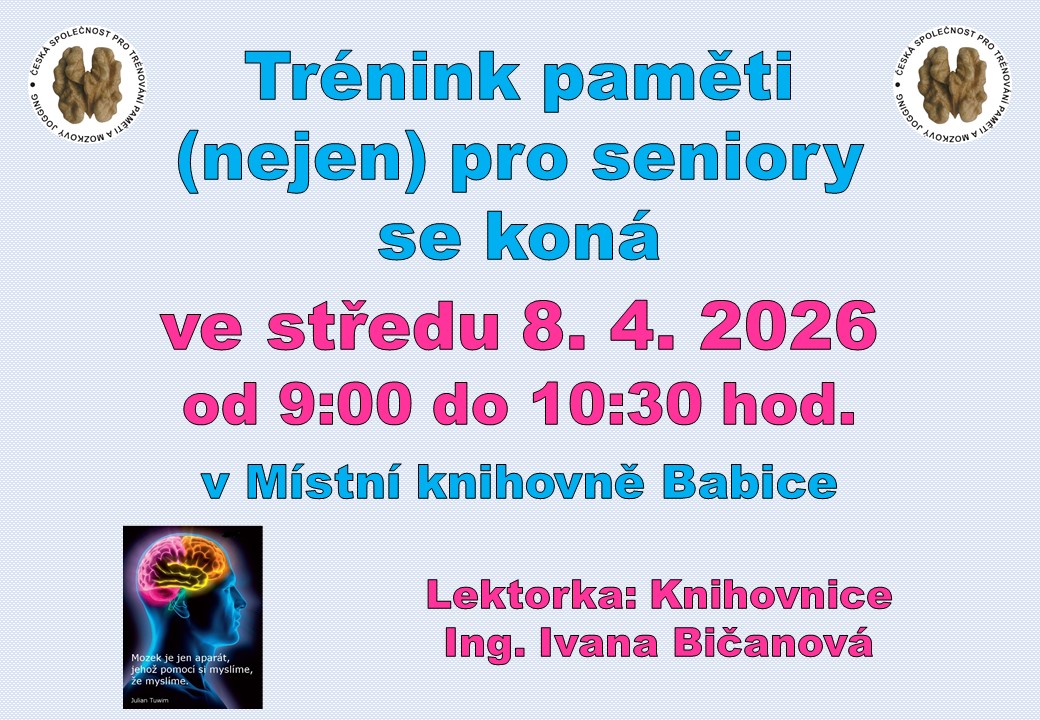 Další pokračování kurzů paměti se bude konat v místní knihovně ve středu 8. dubna.