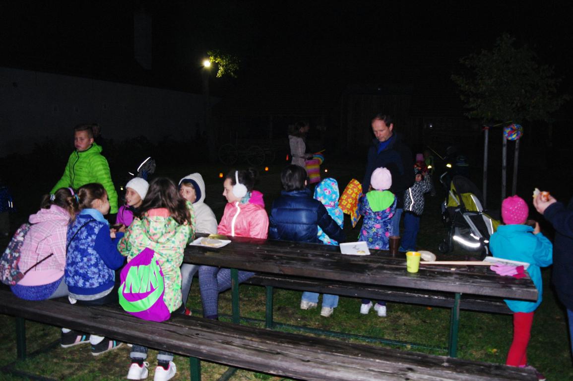 Týden knihoven jsme zakončili tradiční akcí - Uspáváním broučků a berušek před knihovnou u pohádkových stromů a pak lampionovým průvodem obcí. Závěr byl v areálu muzea Na Mýtince, kde místní myslivci připravili pro všechny účastníky občerstvení.