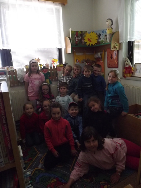 Beseda v knihovně v rámci projektu Už jsem čtenář – knížka pro prvňáčka. Nakonec si děti samy zahrály pohádku.